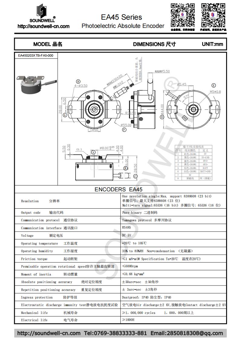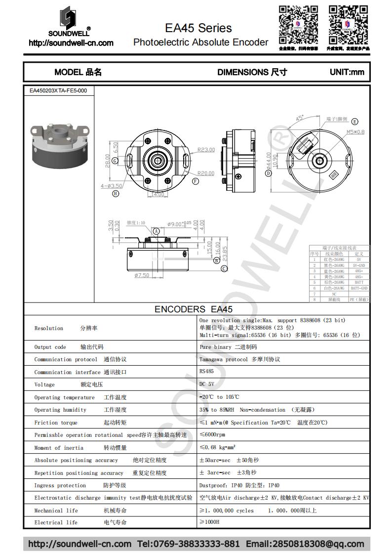 EA45單圈23B、多圈16B中空旋轉光電絕對型編碼器